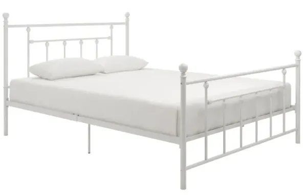 Manila White Metal Bed with Sturdy Metal Frame and Slats