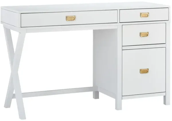 Crosshatch Desk, Workstation Desk With USB / Power Outlet - White