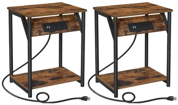 Hivvago Set of 2 Industrial Rustic Brown & Black End Tables