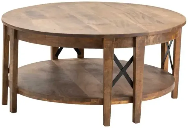 River Wood Round Coffee Table - Saddle