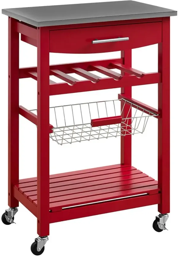 Kitchen Island Cart with Stainless Steel Tabletop and Basket